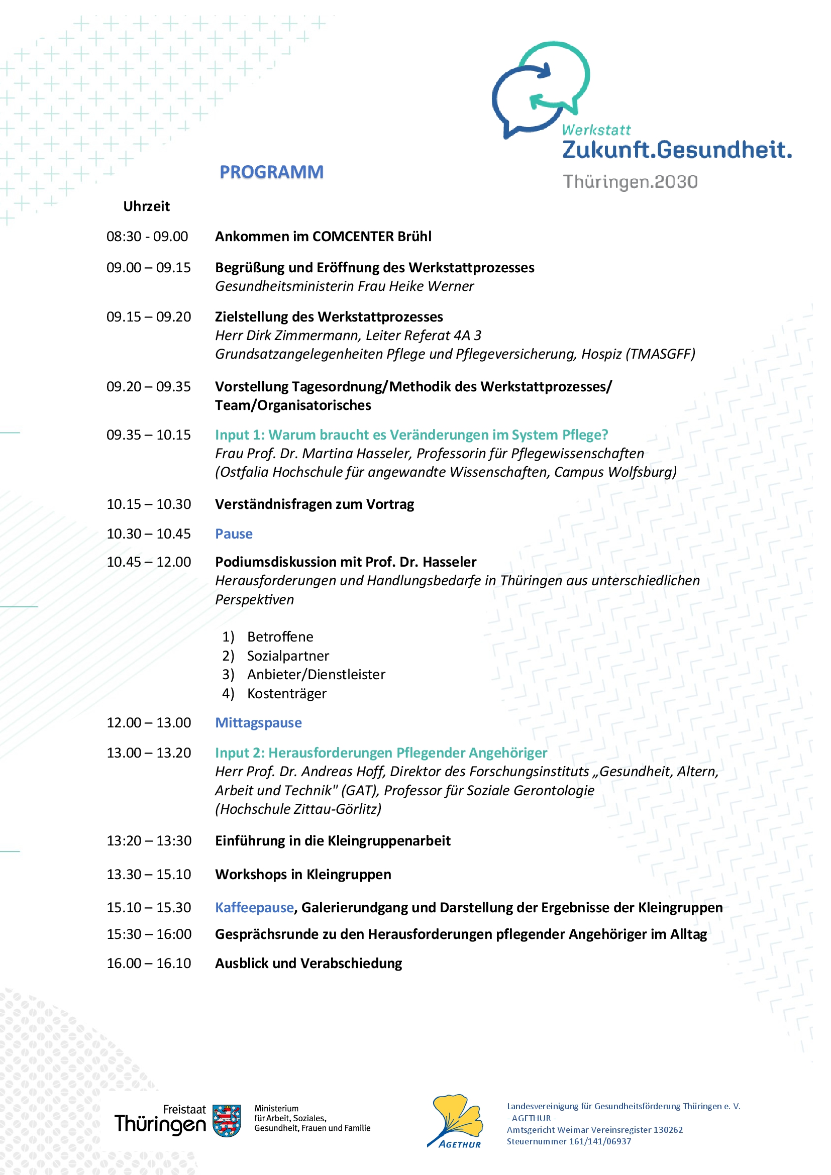Der bisherige Werkstattprozess befasst sich mit zukünftig anstehenden Veränderungen der Versorgungsstrukturen, insbesondere jenen der Krankenhauslandschaft in Thüringen.