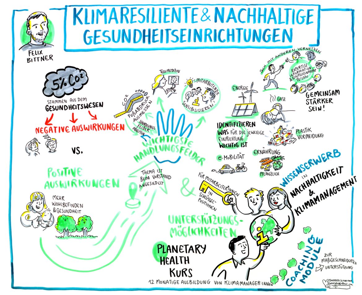 Gesundheitsversorgung und Pflege stehen vor vielfältigen schwierigen Aufgaben und sind aktuell geprägt von ebenso vielen Reformvorhaben. Die anstehenden Strukturveränderungen bieten die Chance, zwingend erforderliche Klimaanpassung & Co. gleich mitzudenken. Die Veranstaltung „Prima Klima in Gesundheitsversorgung und Pflege! Ideen für die Zukunft.“ gab hierzu Impulse, Fachinformationen und Raum für Diskussionen.