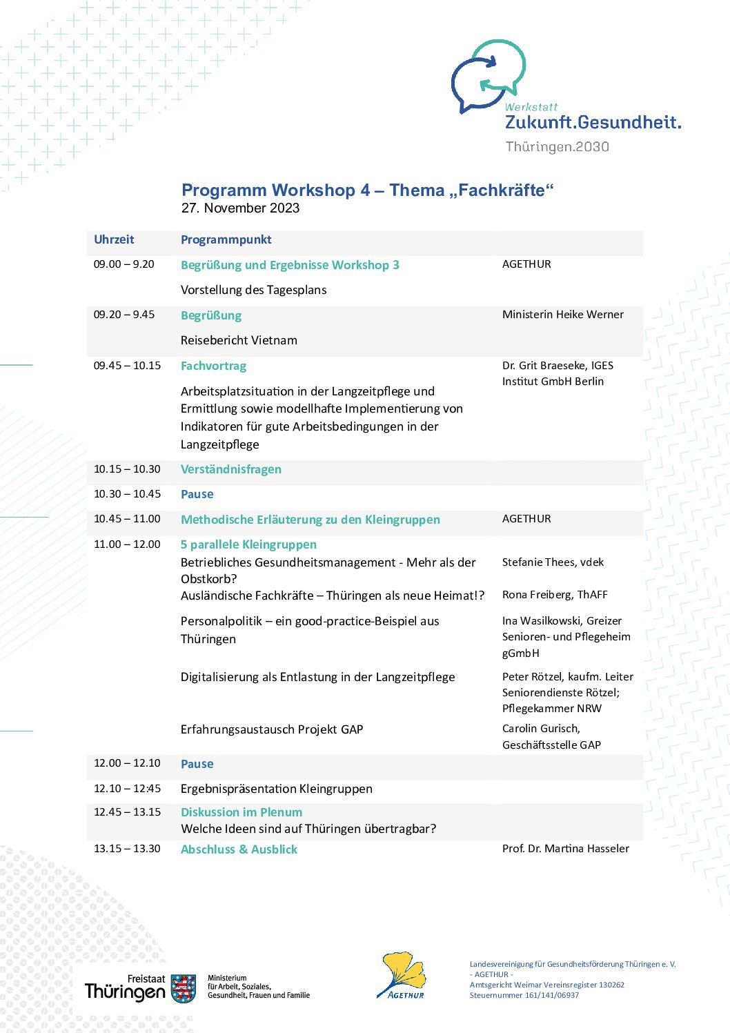 Programm für den Abschluss orkshop am 1. Januar 2024 im Dorint Hotel Erfurt